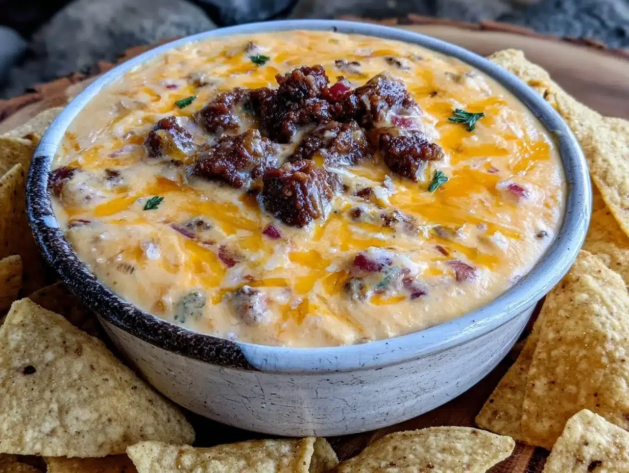 Health Highlights: Thanks to the beef and cheese, this dip offers a nice protein boost, which keeps you full longer (great for parties or long game days). The peppers add vitamin C and a pop of color, and you can make it lower in carbs by skipping the chips and serving with veggies. If you’re watching sodium, use low-salt cheeses and seasonings. Allergens include dairy and, depending on the chips, gluten—so check labels if needed. From a wellness perspective, I love that you can tweak this recipe to fit your needs—whether you’re going for more veggies, a lighter protein, or a full-on indulgence. It’s all about balance, right?